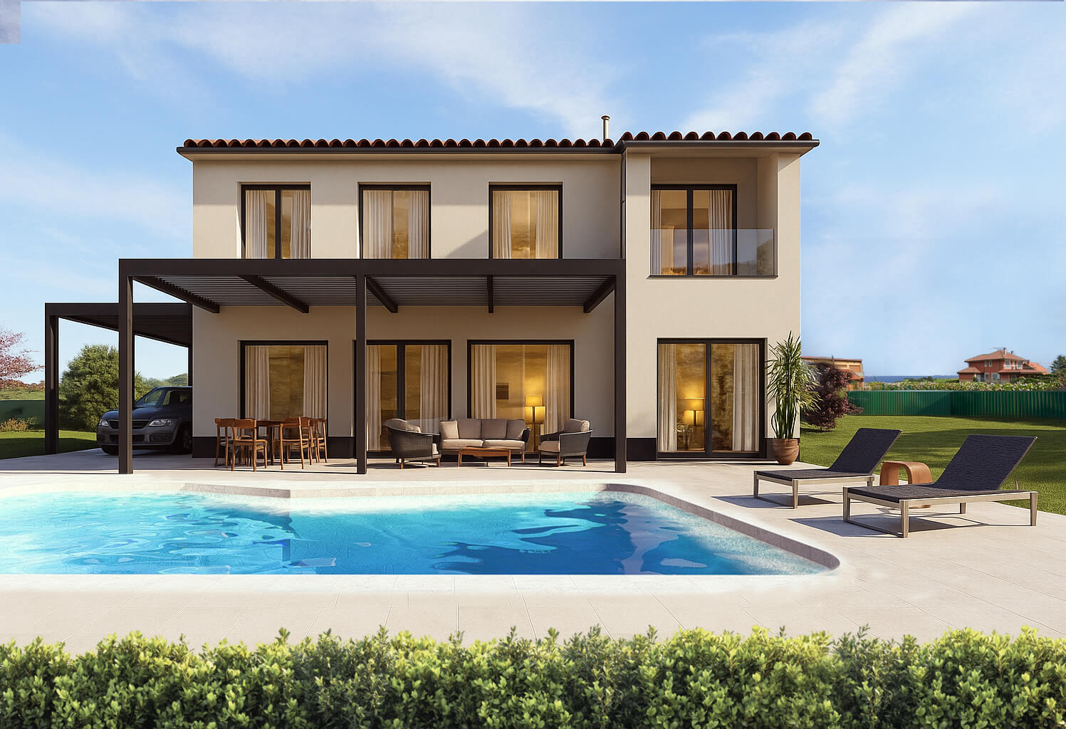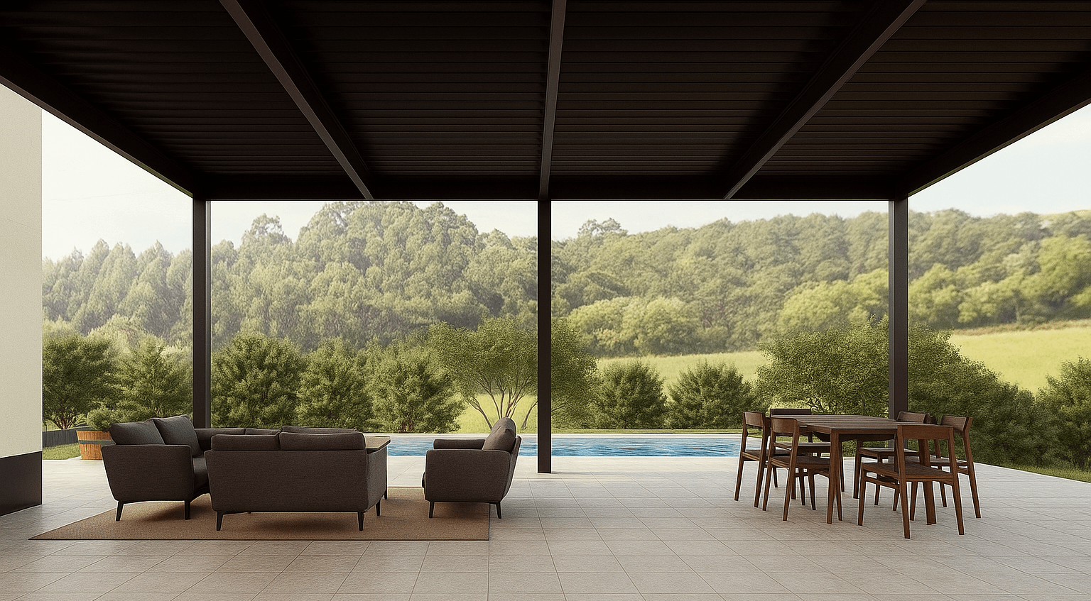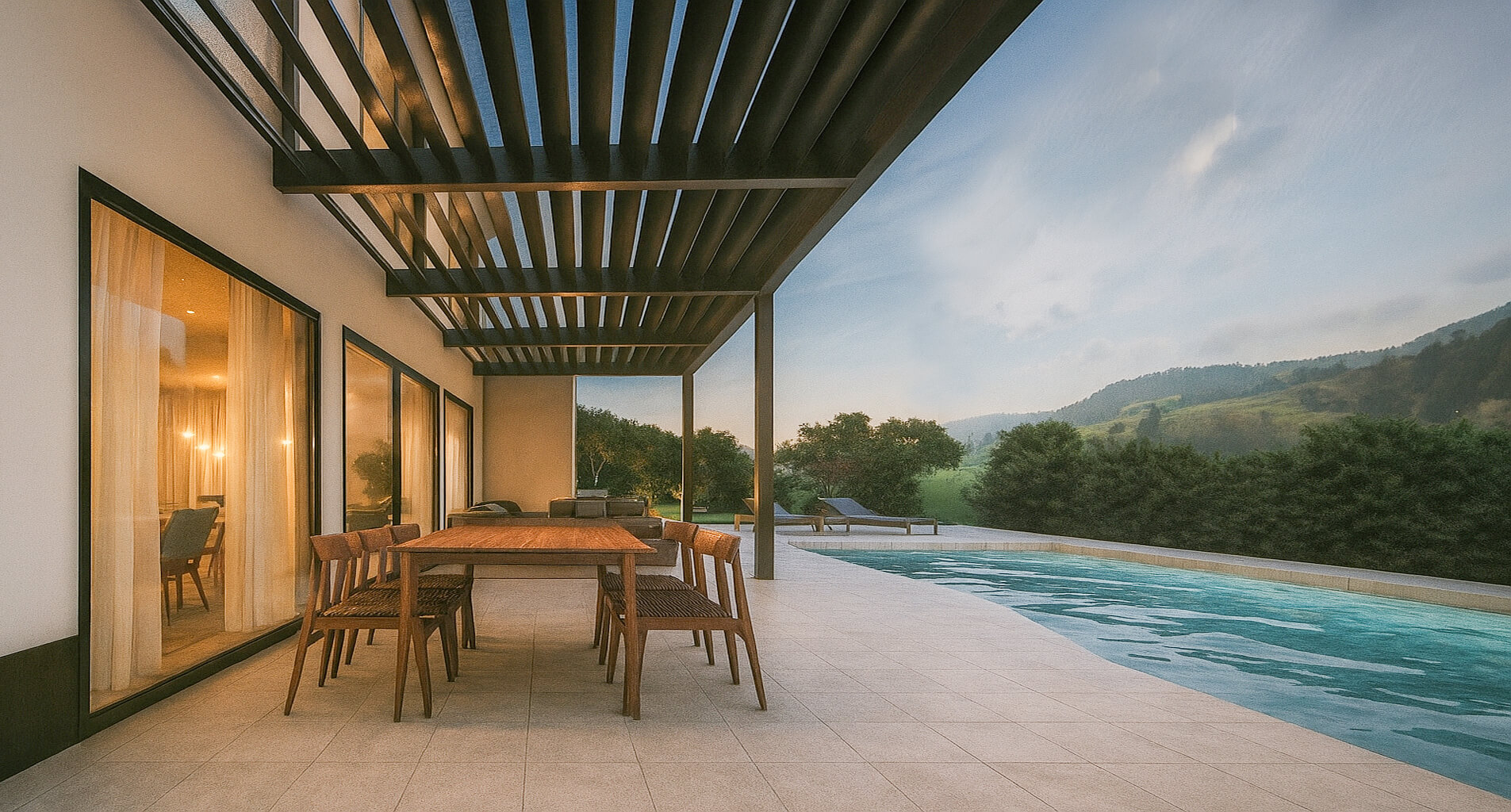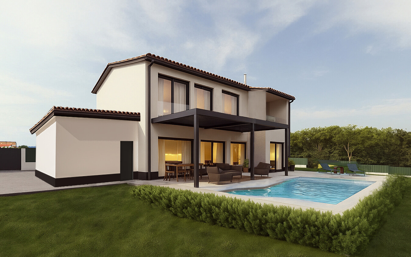 Los espacios exteriores, como la terraza y la zona de piscina, permiten disfrutar del entorno durante todo el año, combinando funcionalidad y confort según las condiciones climáticas y el uso previsto.