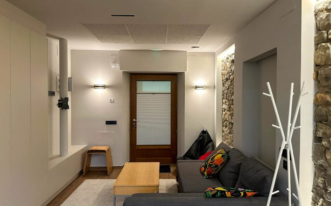 Se ha introducido también un sistema mecánico de renovación de aire, que permite no tener que abrir la ventana para ventilar, lo cual dota a la vivienda un mayor aislamiento acústico y térmico.