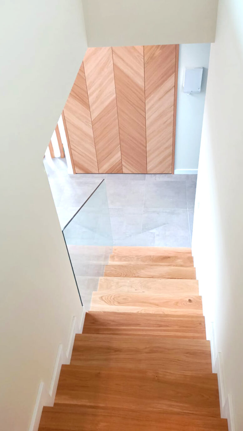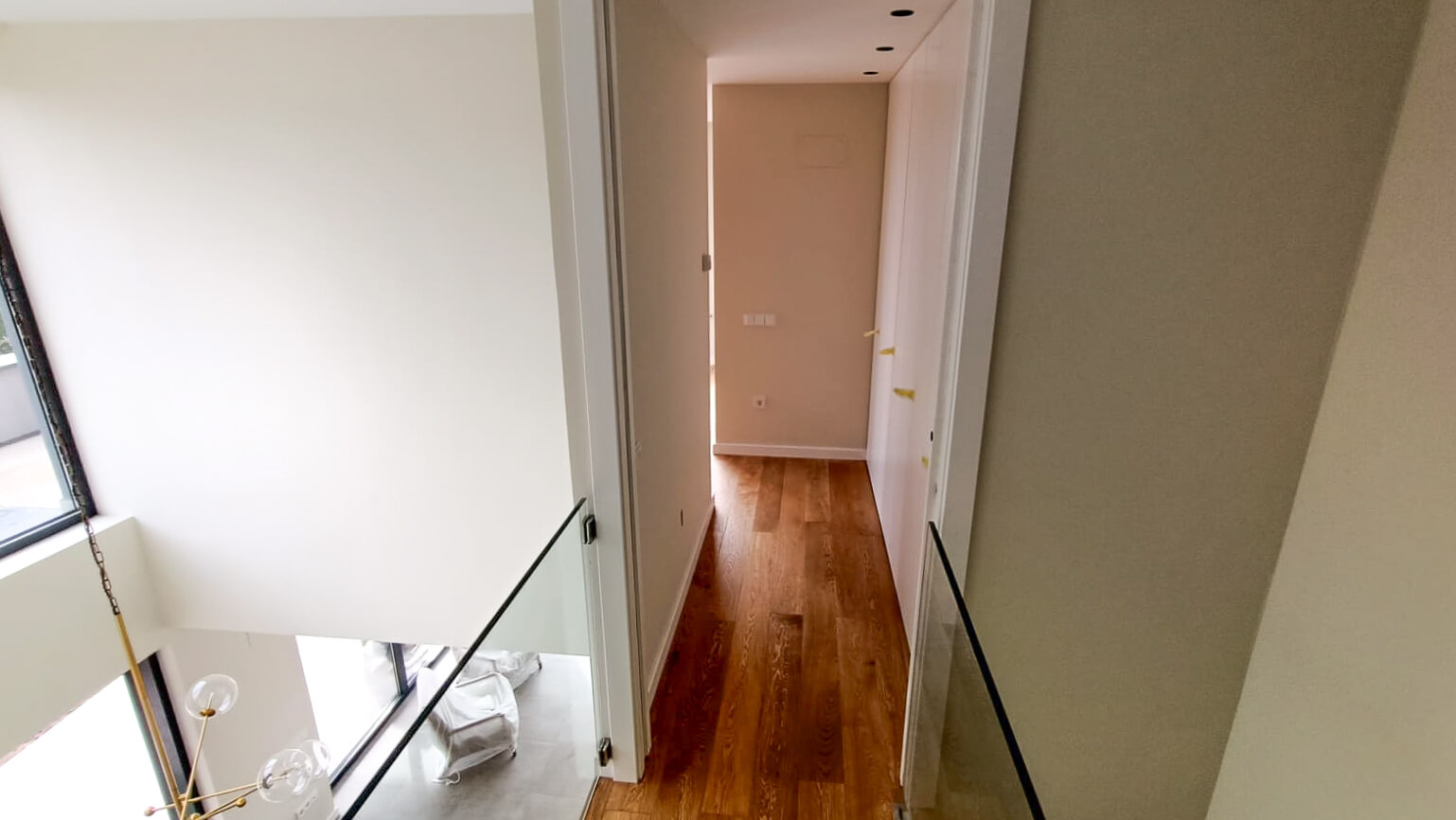 La conexión entre ambas plantas es directa a través del núcleo de escaleras central, que divide estas dos zonas de dormitorios descritas.
