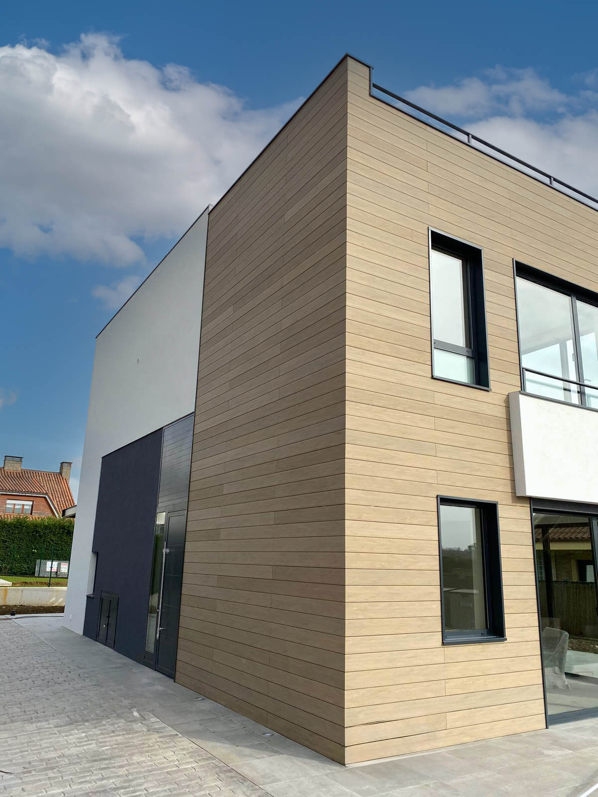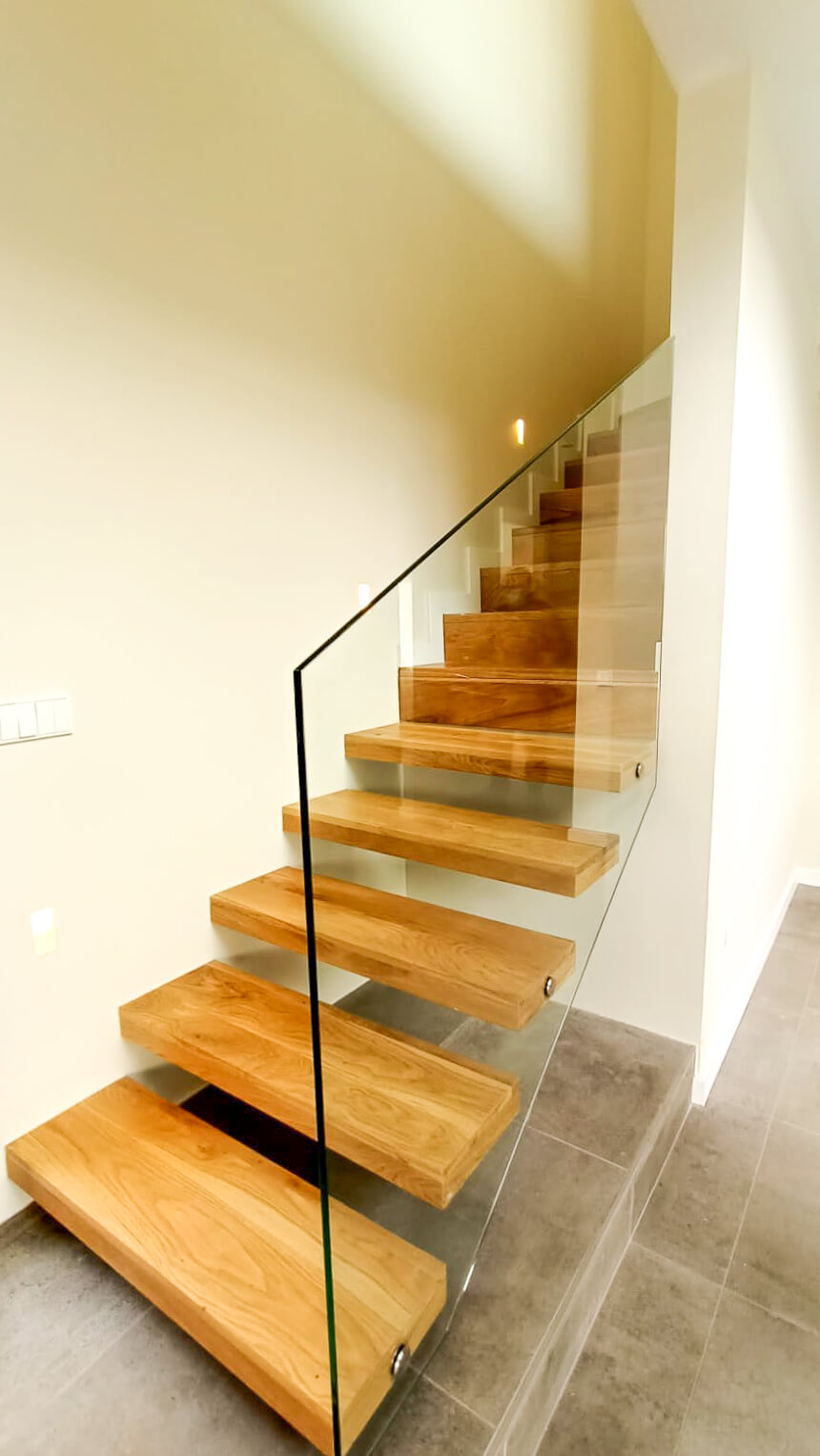 La composición formal de la vivienda se basa en un volumen dispuesto de acuerdo a las vistas y a la orientación solar. Un volumen en planta baja acoge todas las estancias «de día», así como un dormitorio, mientras que el volumen de planta alta, junto con sus terrazas sobre la planta baja o a modo de voladizos, permite generar espacios techados en planta baja a modo de porches.