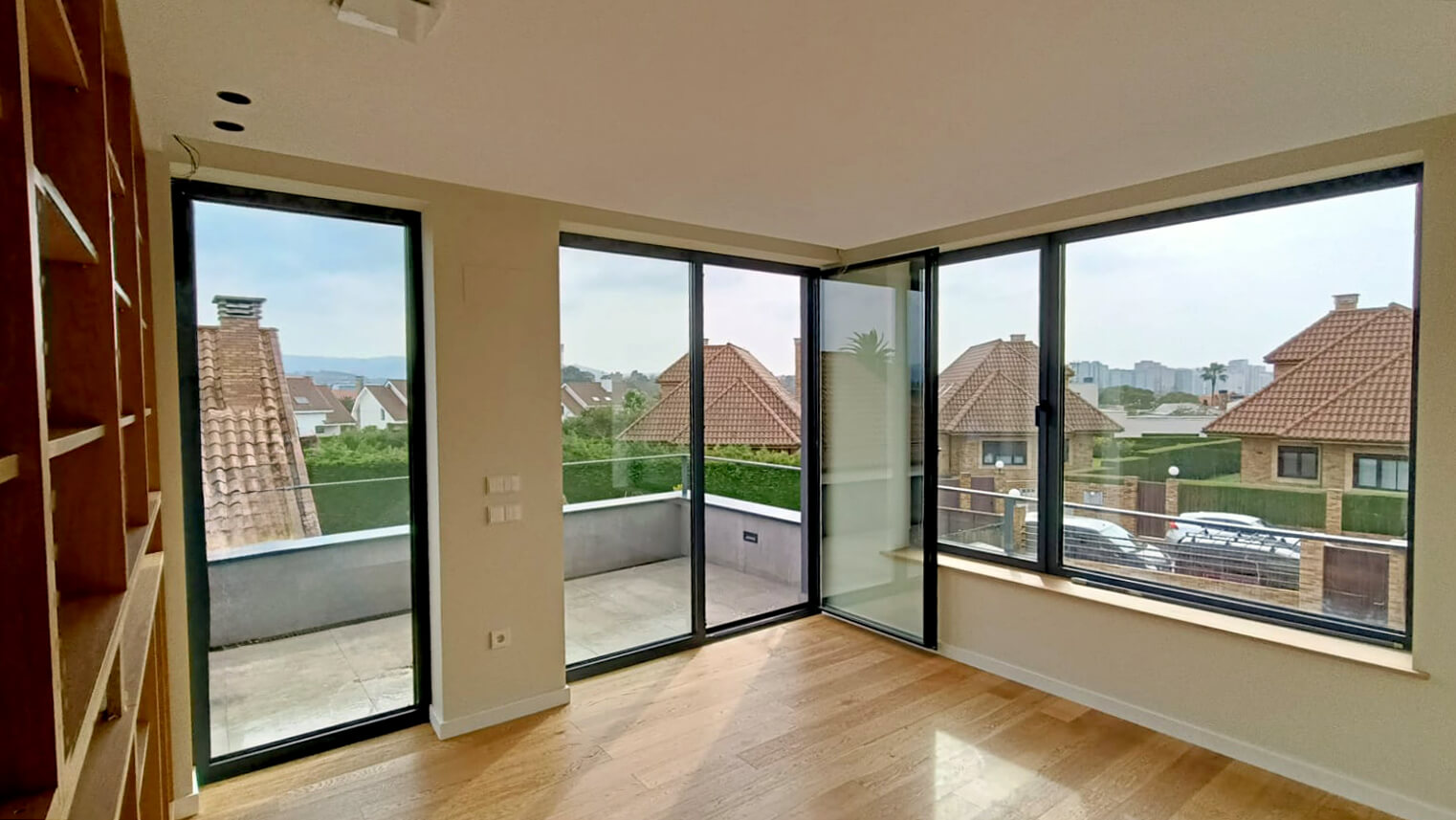 Esta casa en Somió se distribuye en planta baja con las zonas comunes, un dormitorio, un baño y el cuarto de lavado – instalaciones, y planta primera, donde se ubica el dormitorio principal con vestidor y baño propio, así como otro dormitorio, también con baño propio. Ambos dormitorios cuentan con acceso a dos zonas de terraza.