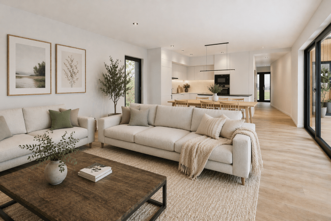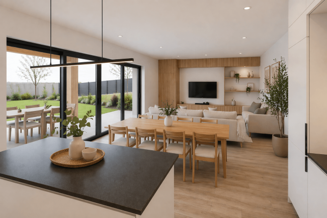La distribución interior busca un equilibrio entre las zonas comunes y privadas, priorizando la funcionalidad, el confort y la flexibilidad de uso.