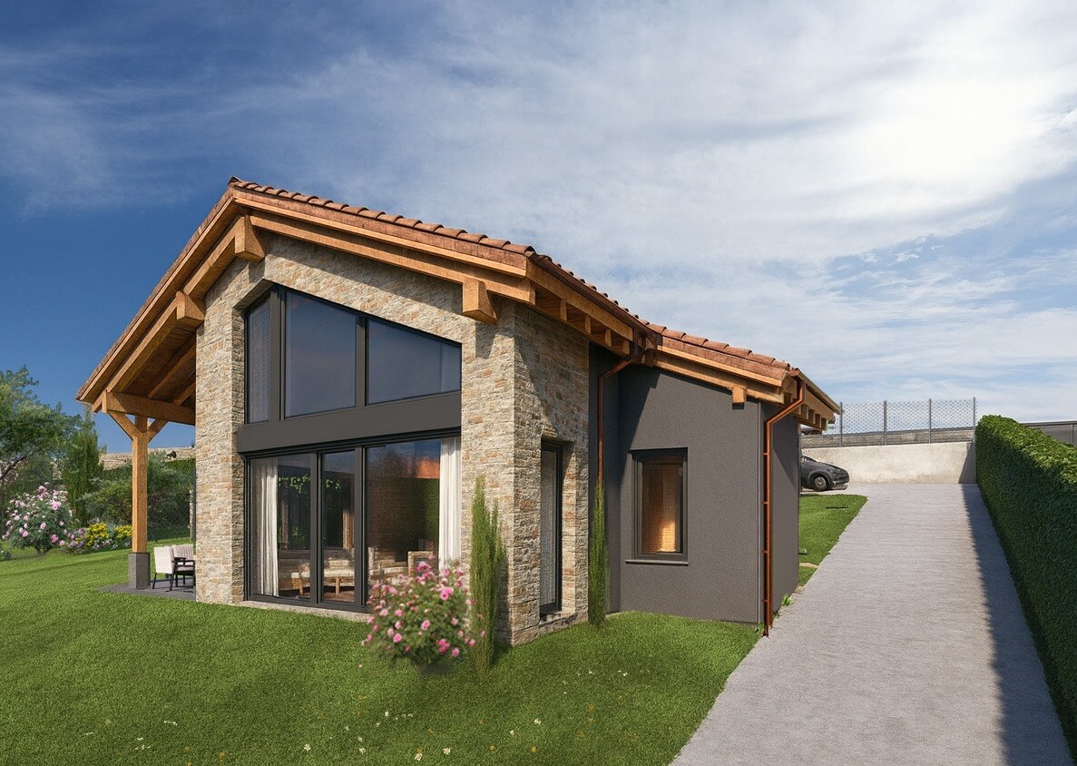 En cuanto a los materiales de cerramiento, se plantea el uso de un sistema SATE, con un revestimiento acrílico en diferentes tonos, combinado con partes de acabado en piedra natural y cubiertas con estructura vista de madera natural. Las cubiertas, serán inclinadas, con acabados en teja cerámica curva color rojo